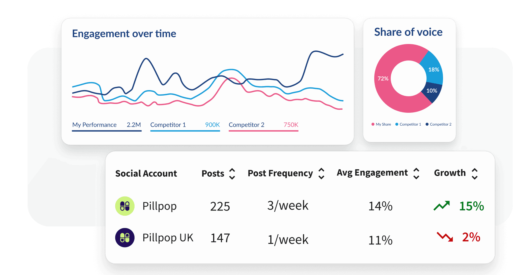 Use custom dashboards and trend analysis to monitor brand health, benchmark against competitors, and understand how reviews influence conversions and your market position.